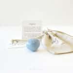 Een zakje van ecologisch katoen (9x12 cm), een edelsteen en een mini kaartje met uitleg over de steen.