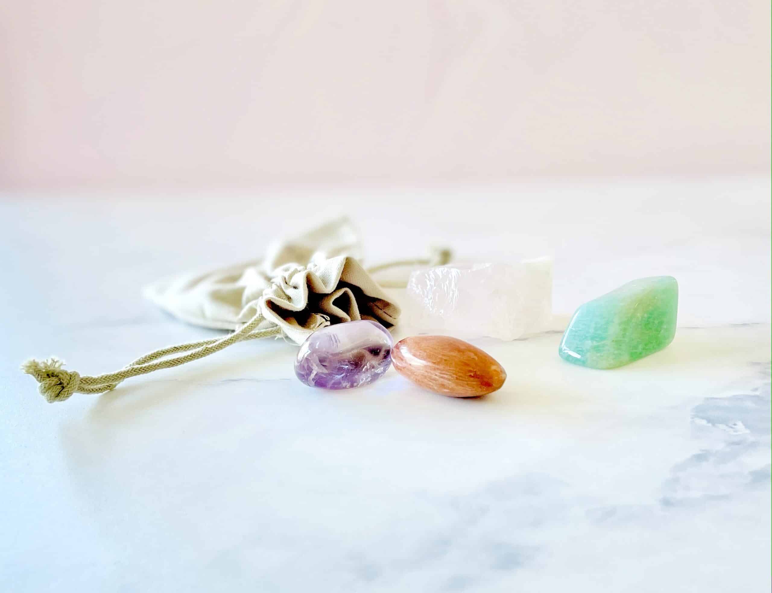 Een klein zakje vol troost met een prachtige edelsteen.