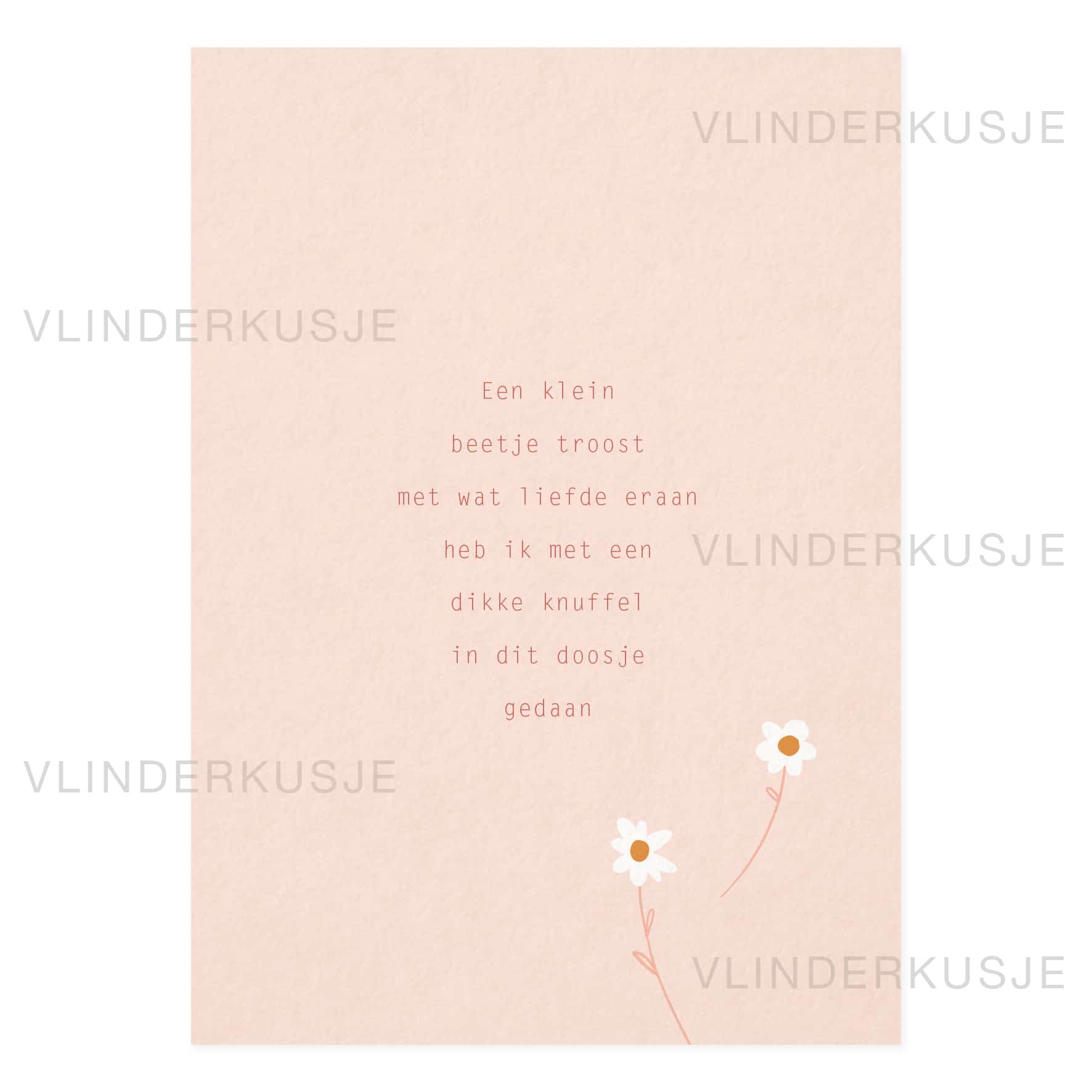 Een kaartje met tekst en illustratie vol liefde en troost.