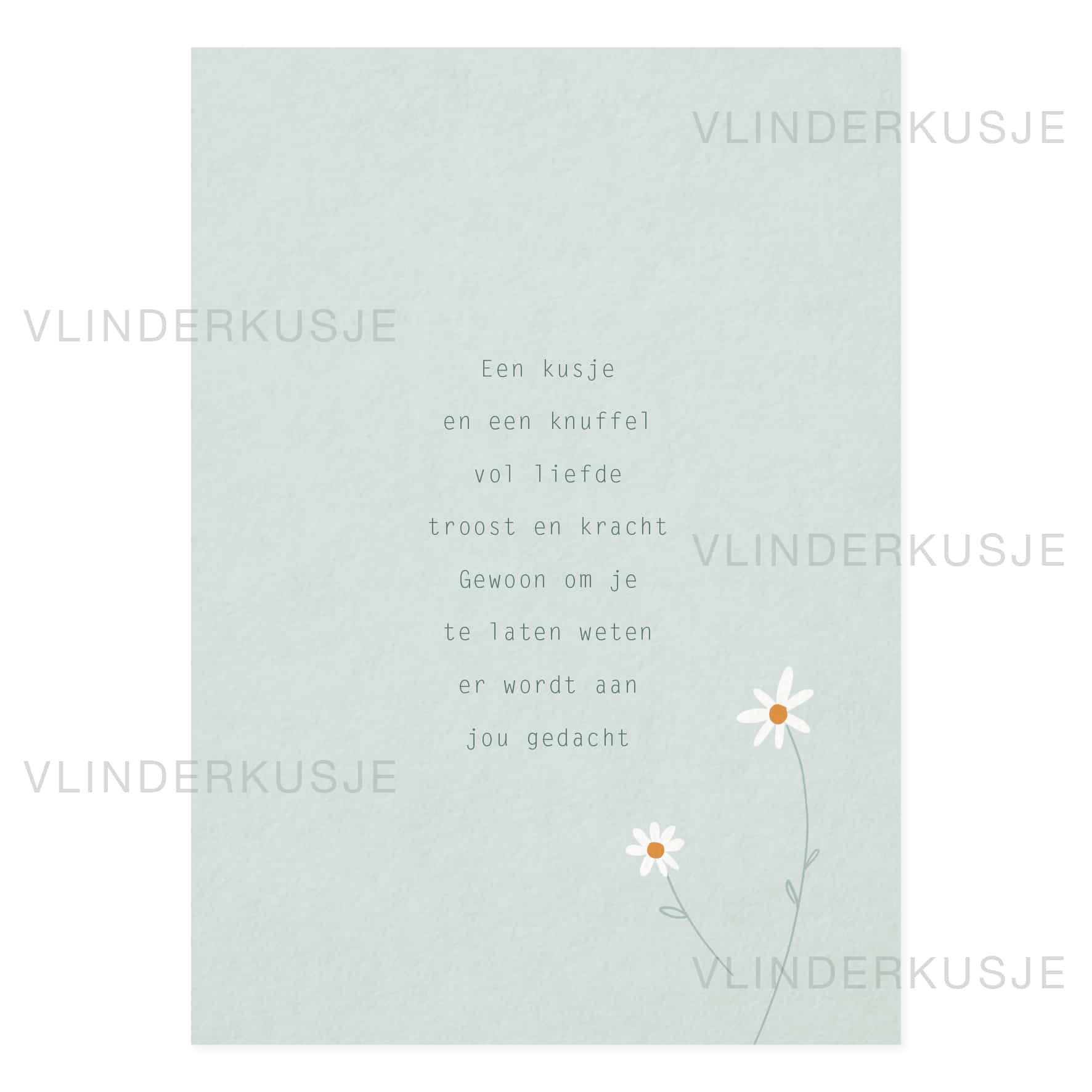 Een kaartje met tekst en illustratie vol liefde en troost.