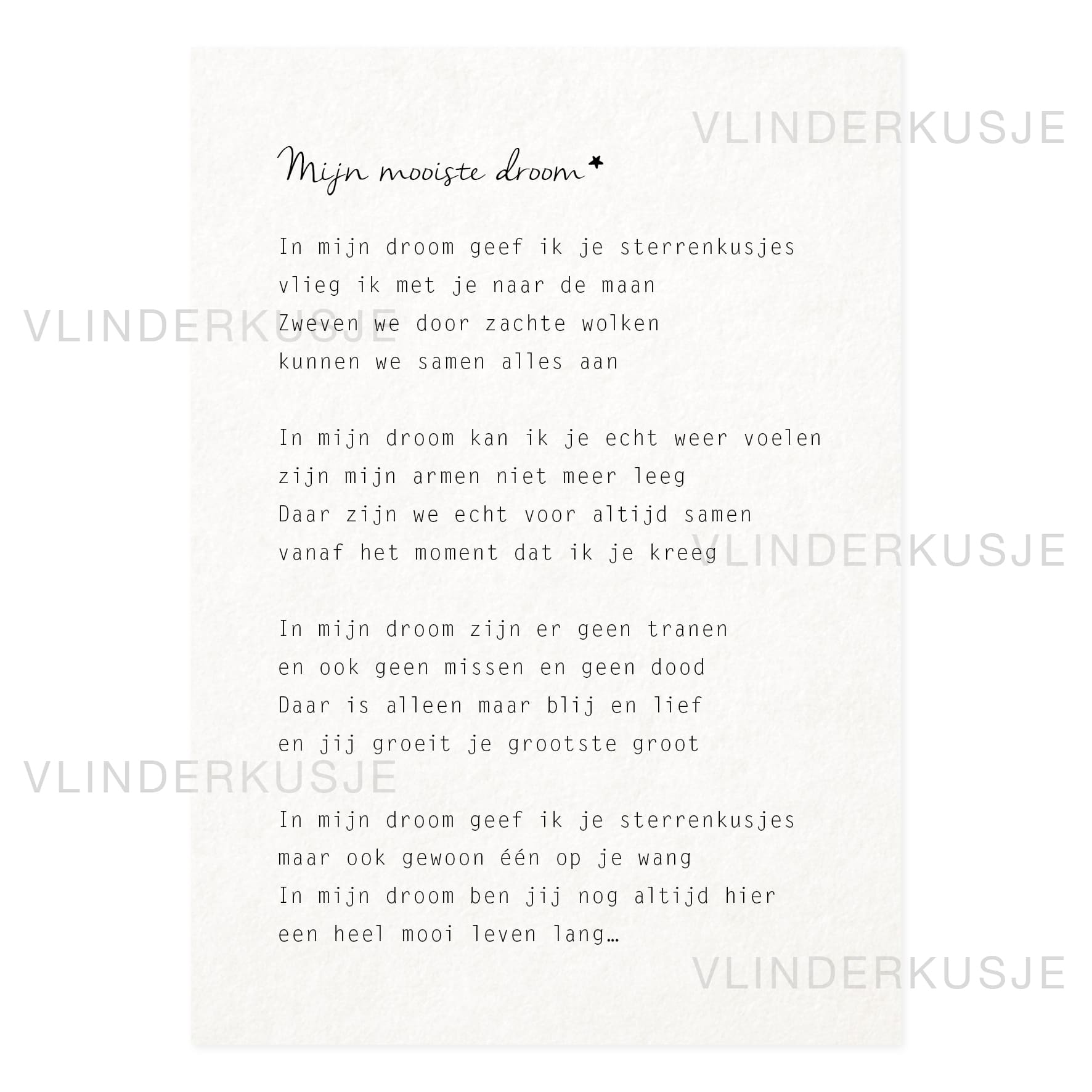 Een kaartje met een gedicht bij verlies van een kind(je).