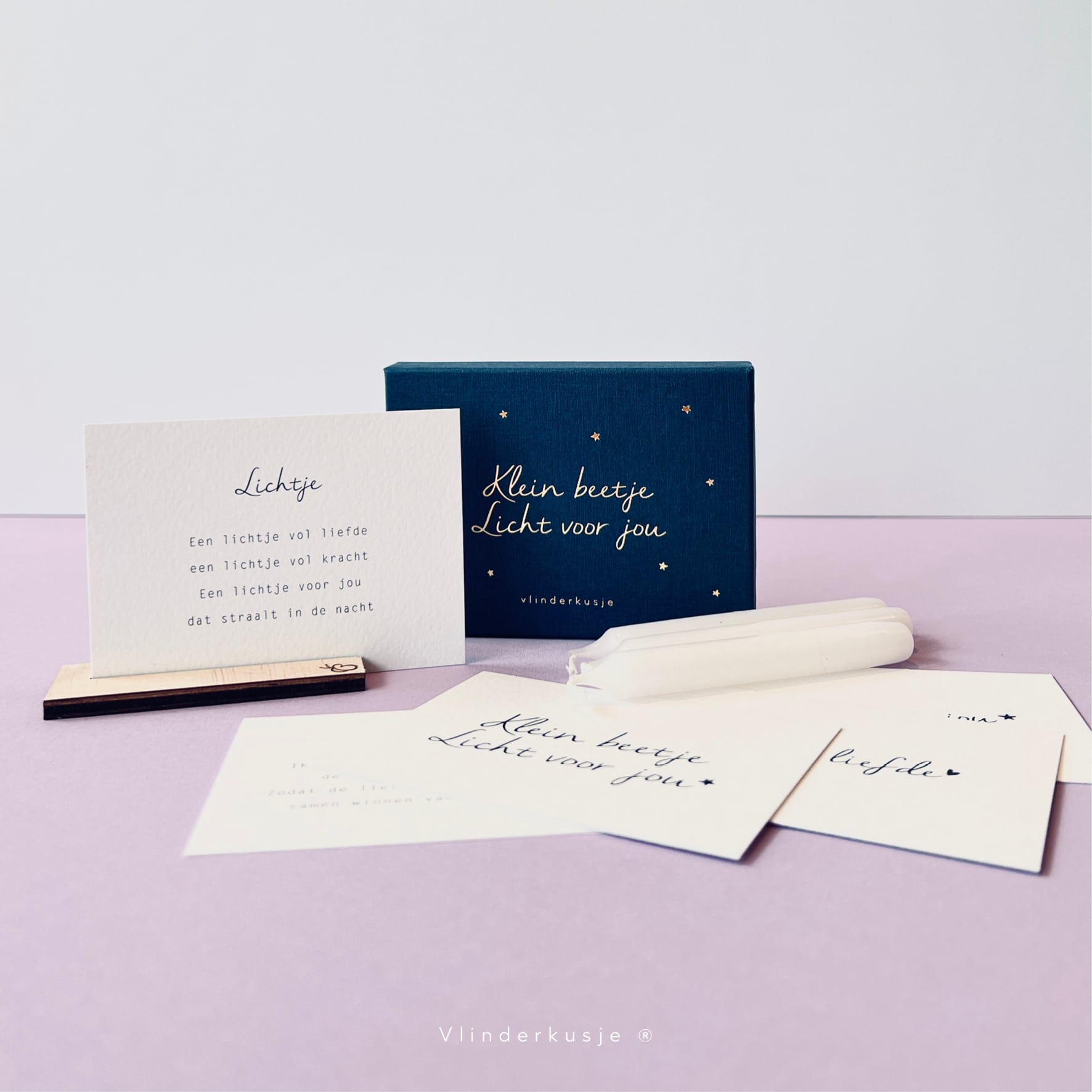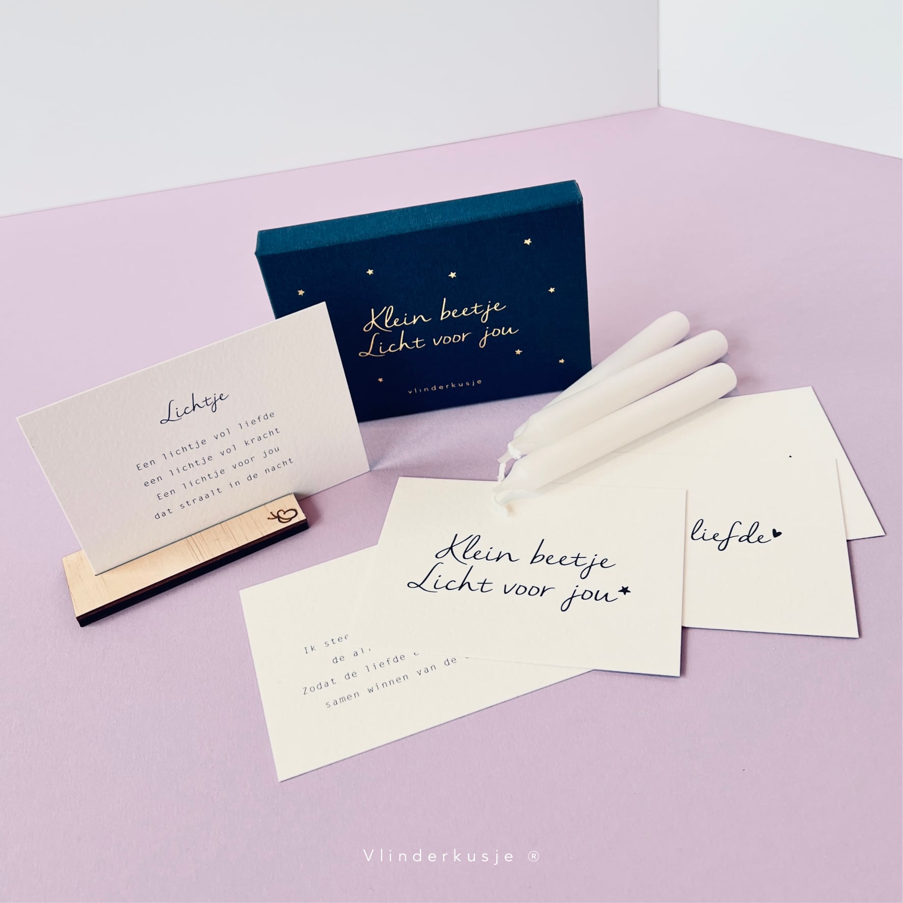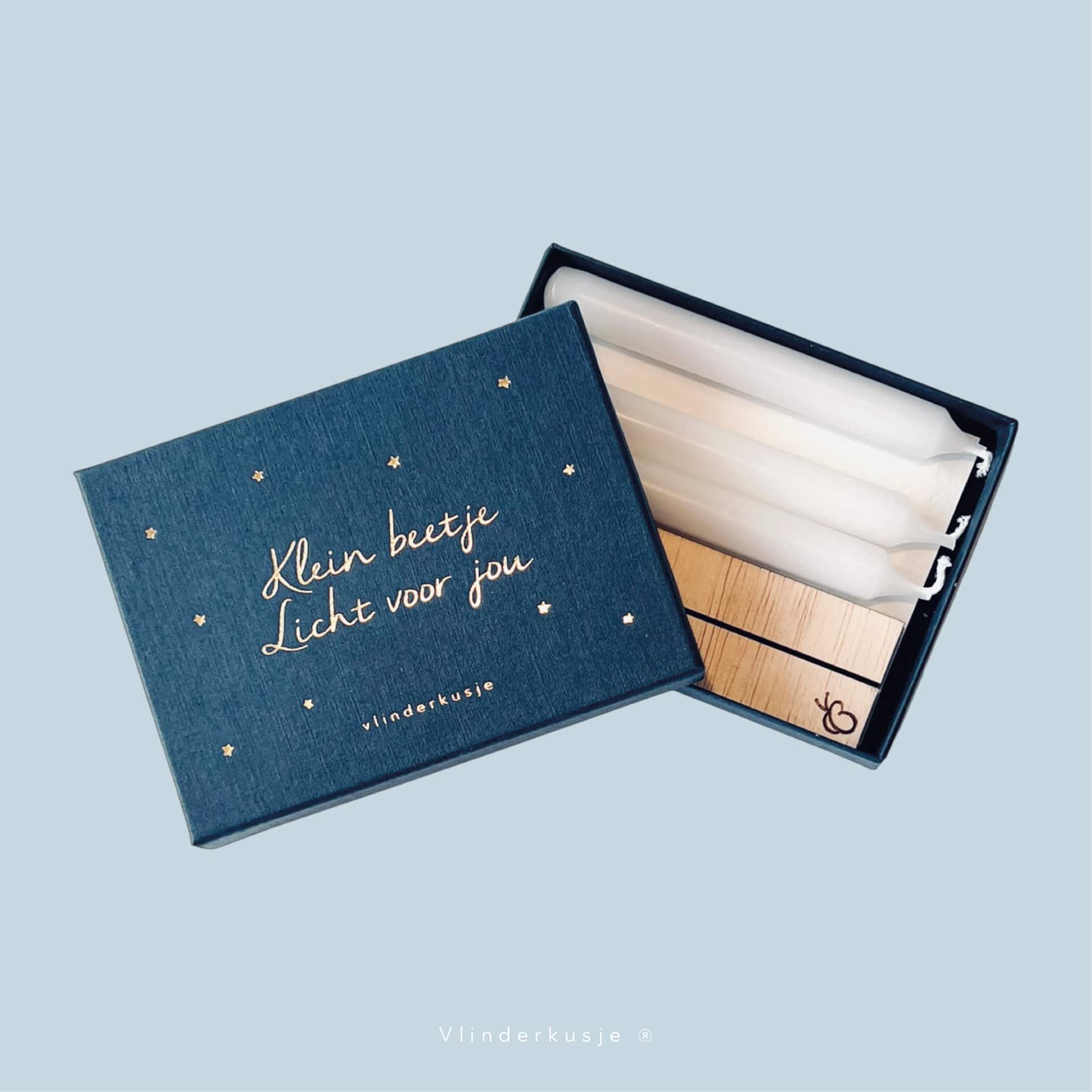 Een klein beetje licht voor jou! Een prachtig doosje van Vlinderkusje met goudkleurige letters, vol licht.