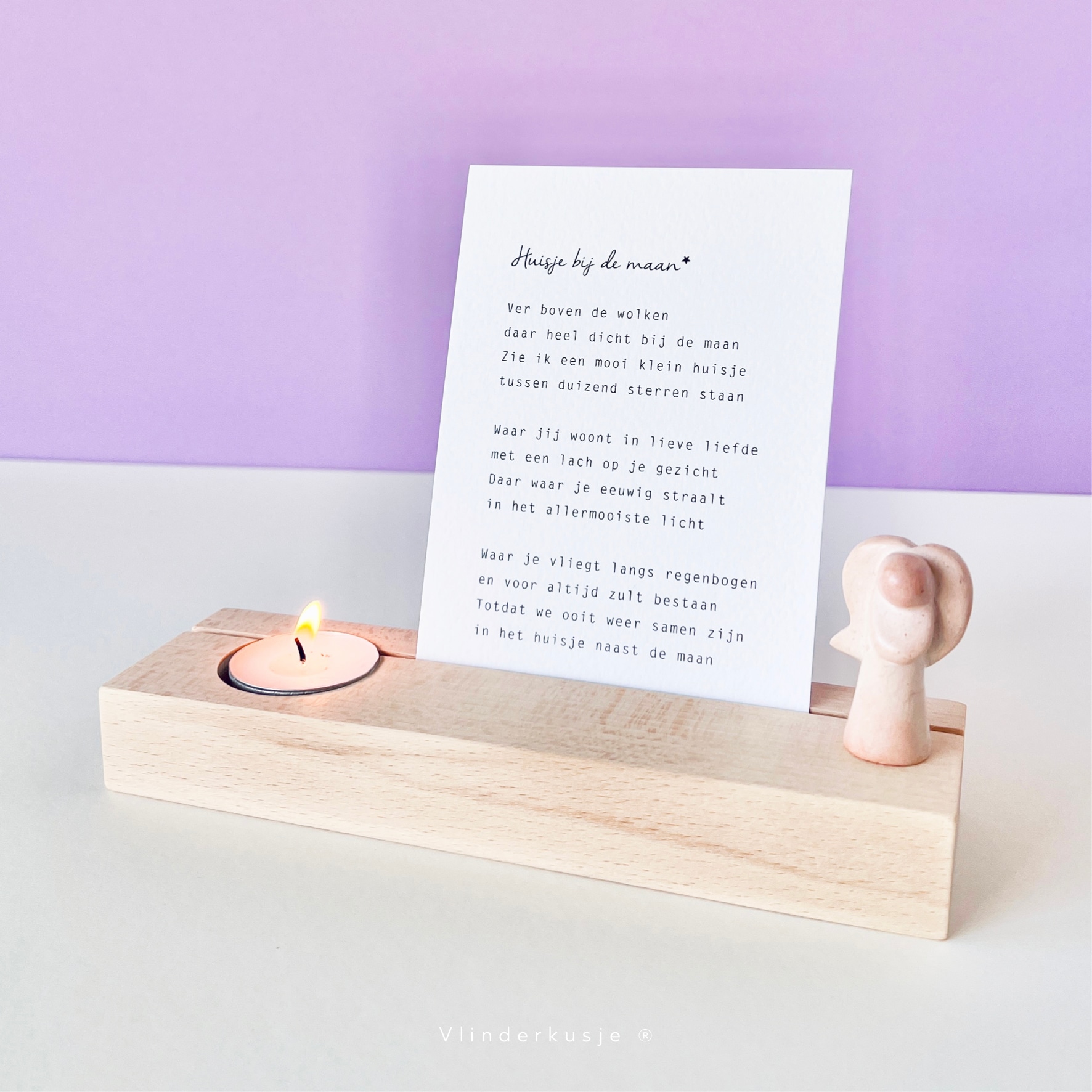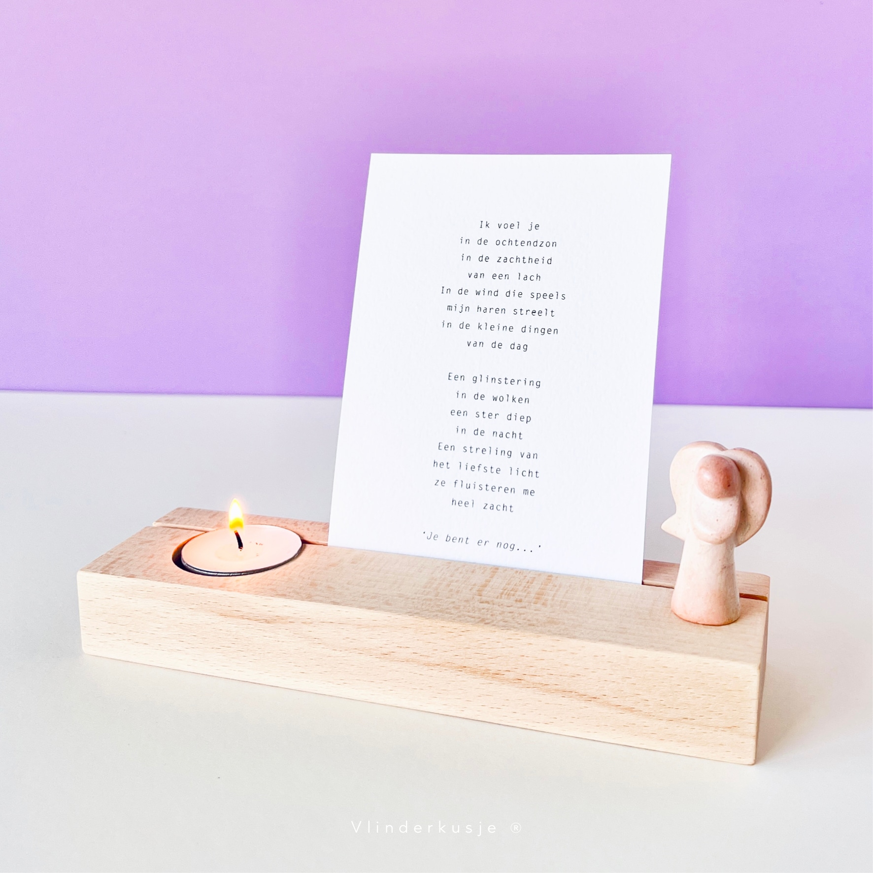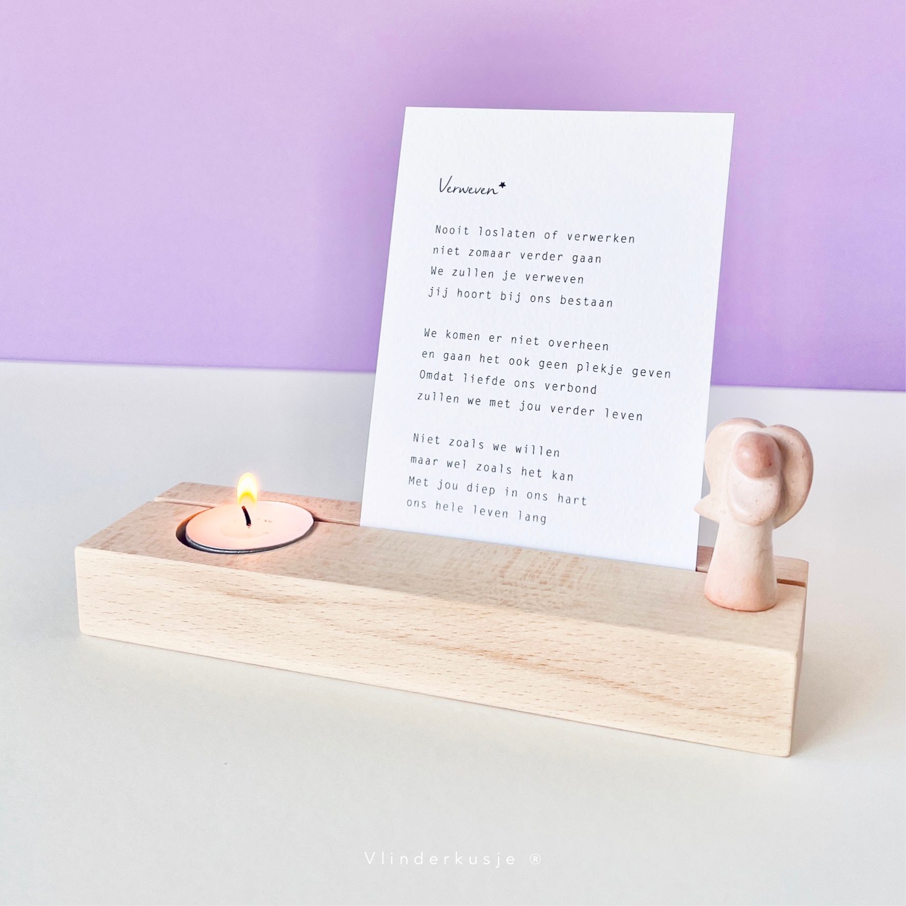Een lief gedenkplekje ter herinnering aan iemand die wordt gemist… Je hebt de keuze uit tien kaartjes, en er is de optie om te kiezen voor een hartje of engeltje van speksteen.
