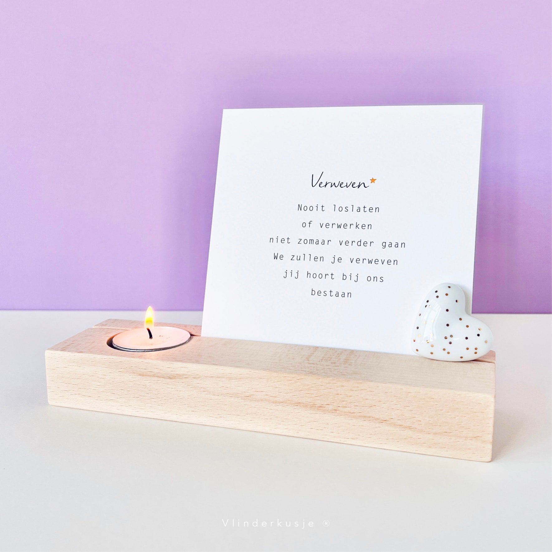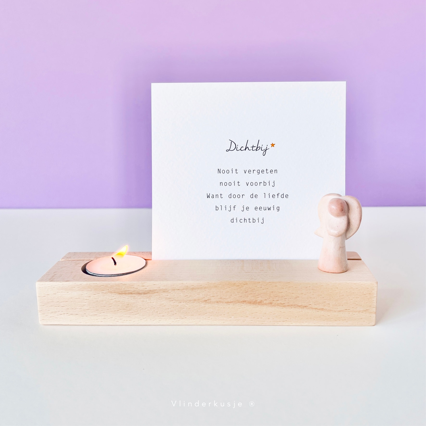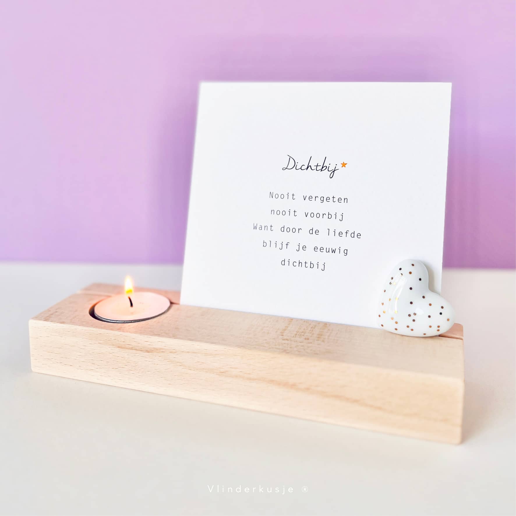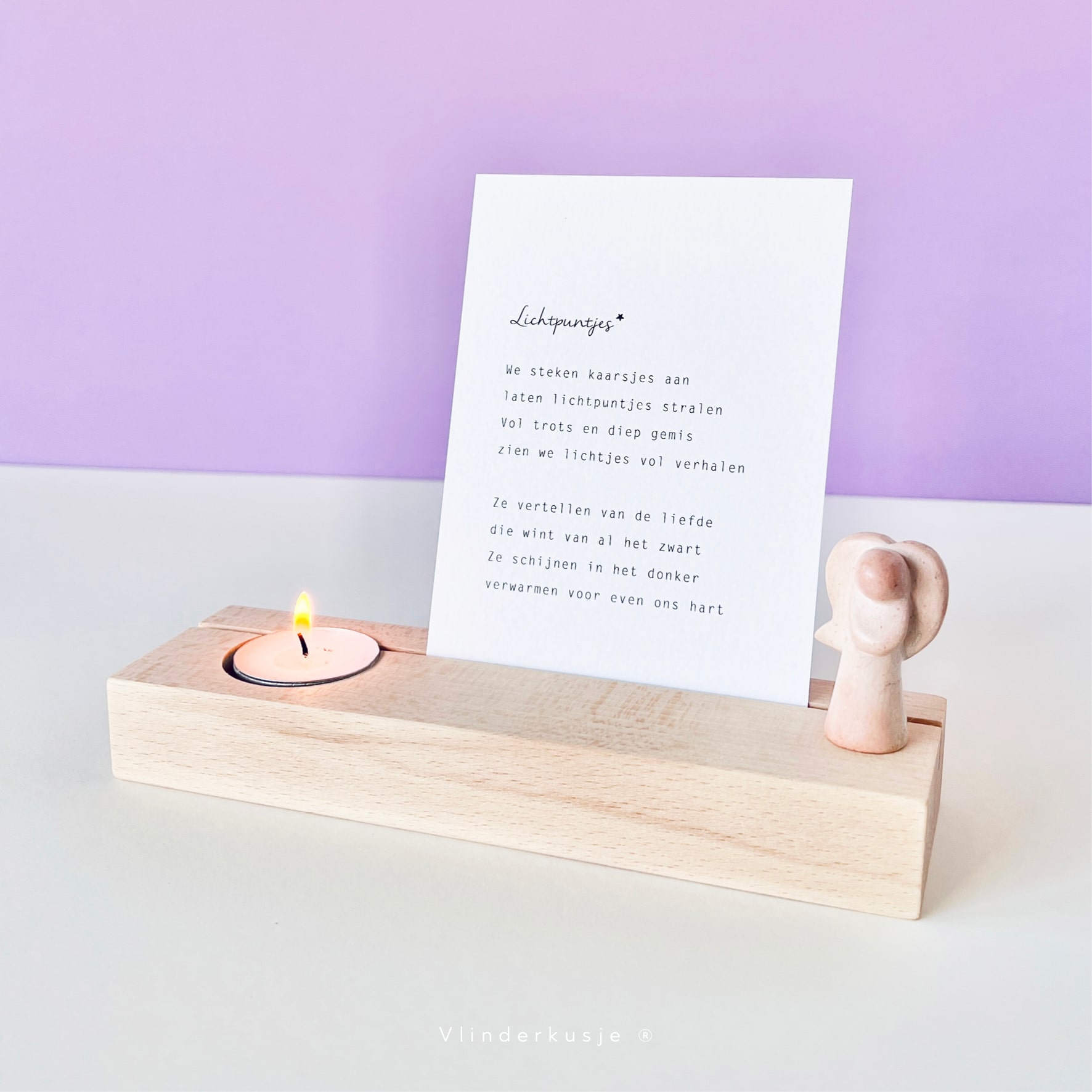 Een lief gedenkplekje ter herinnering aan iemand die wordt gemist… Je hebt de keuze uit tien kaartjes, en er is de optie om te kiezen voor een hartje of engeltje van speksteen.
