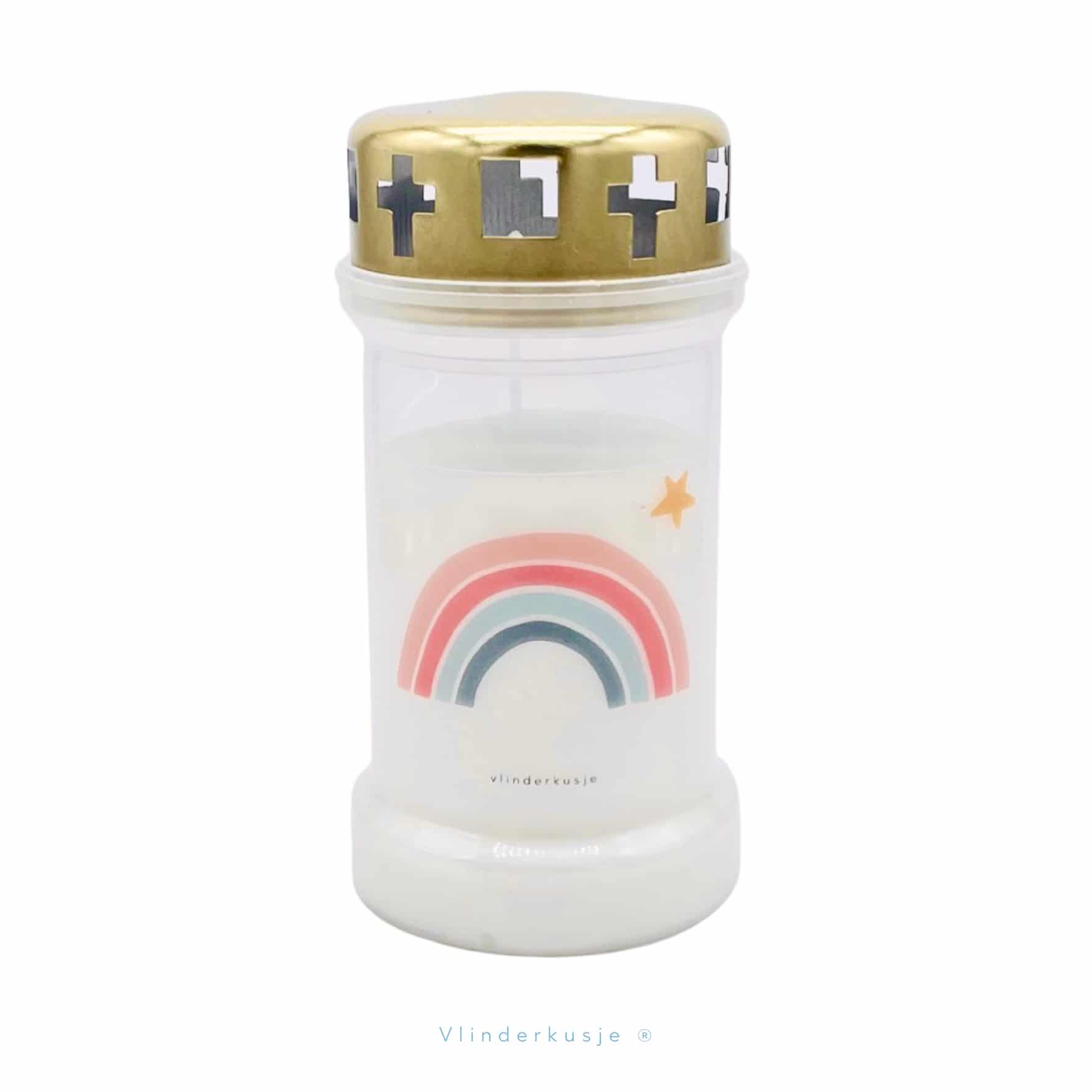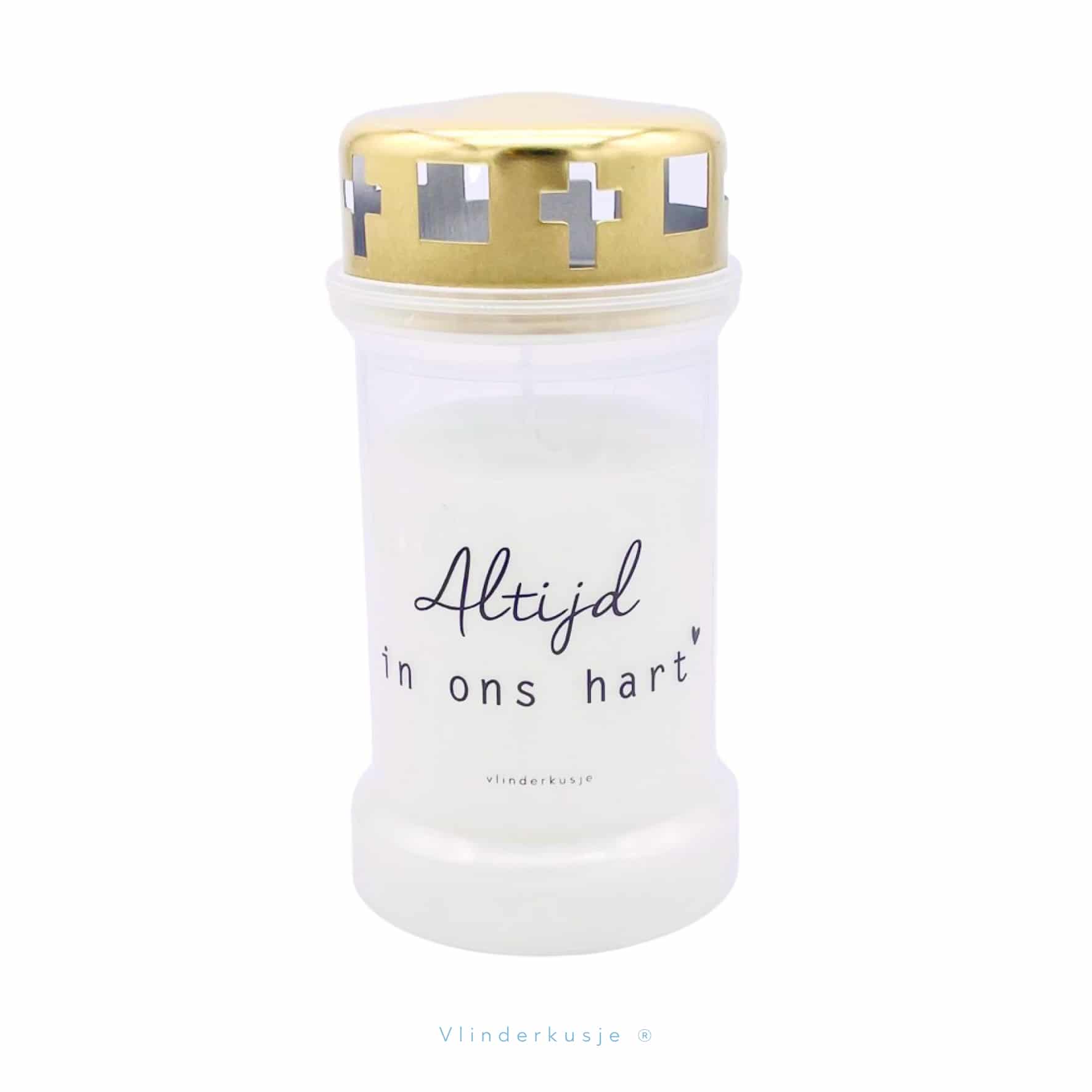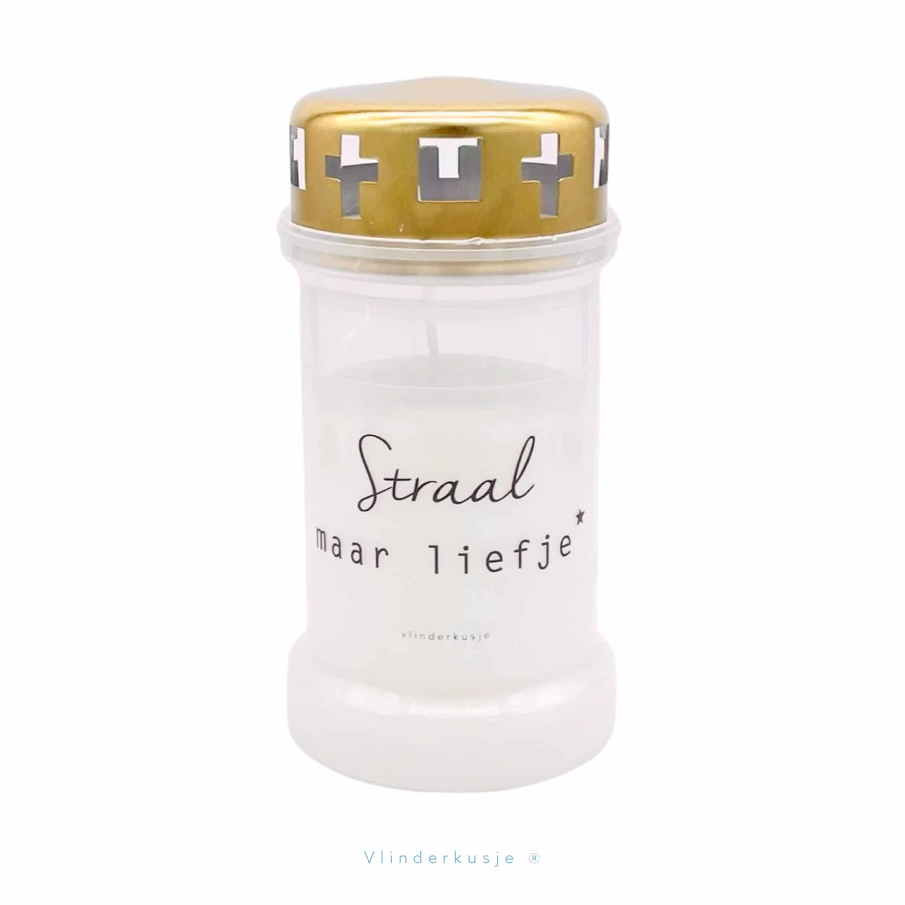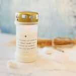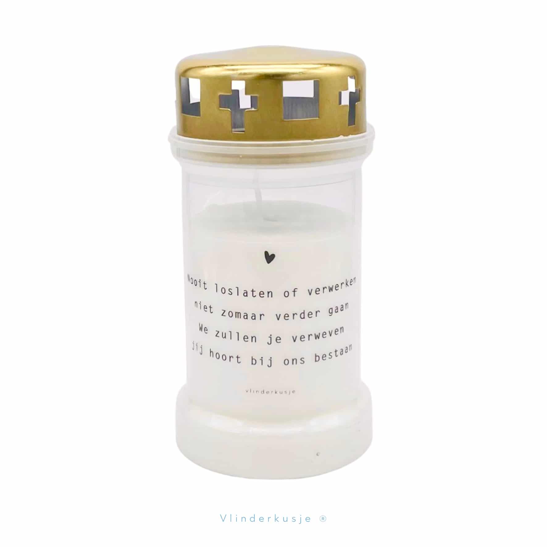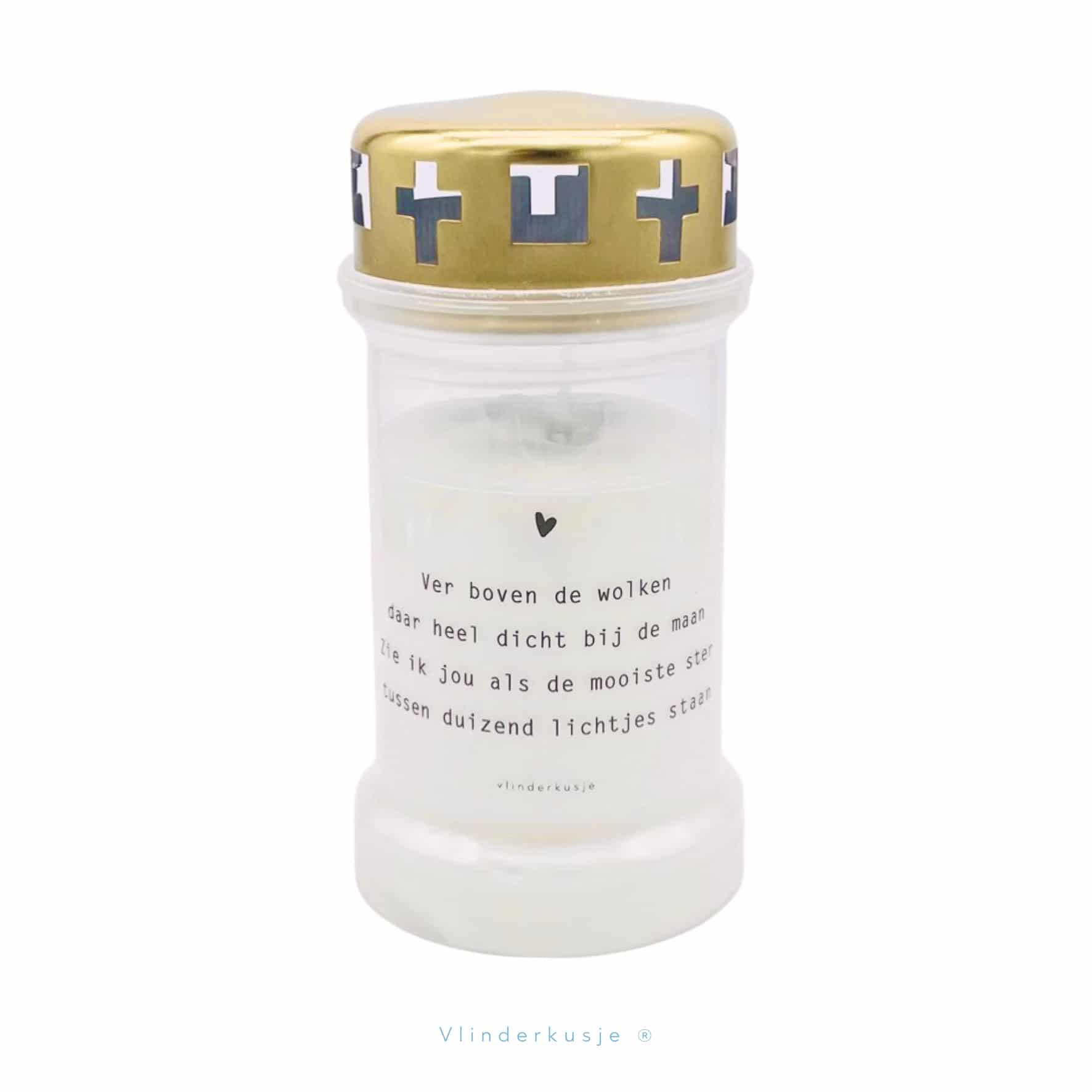 Prachtige kaars voor op een graf(je) met gedichtje of lieve tekst bij troost en verlies.