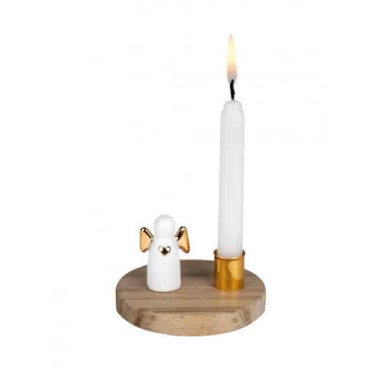 Prachtige kandelaar met een lief engeltje van keramiek, voor kleine potloodkaarsjes.