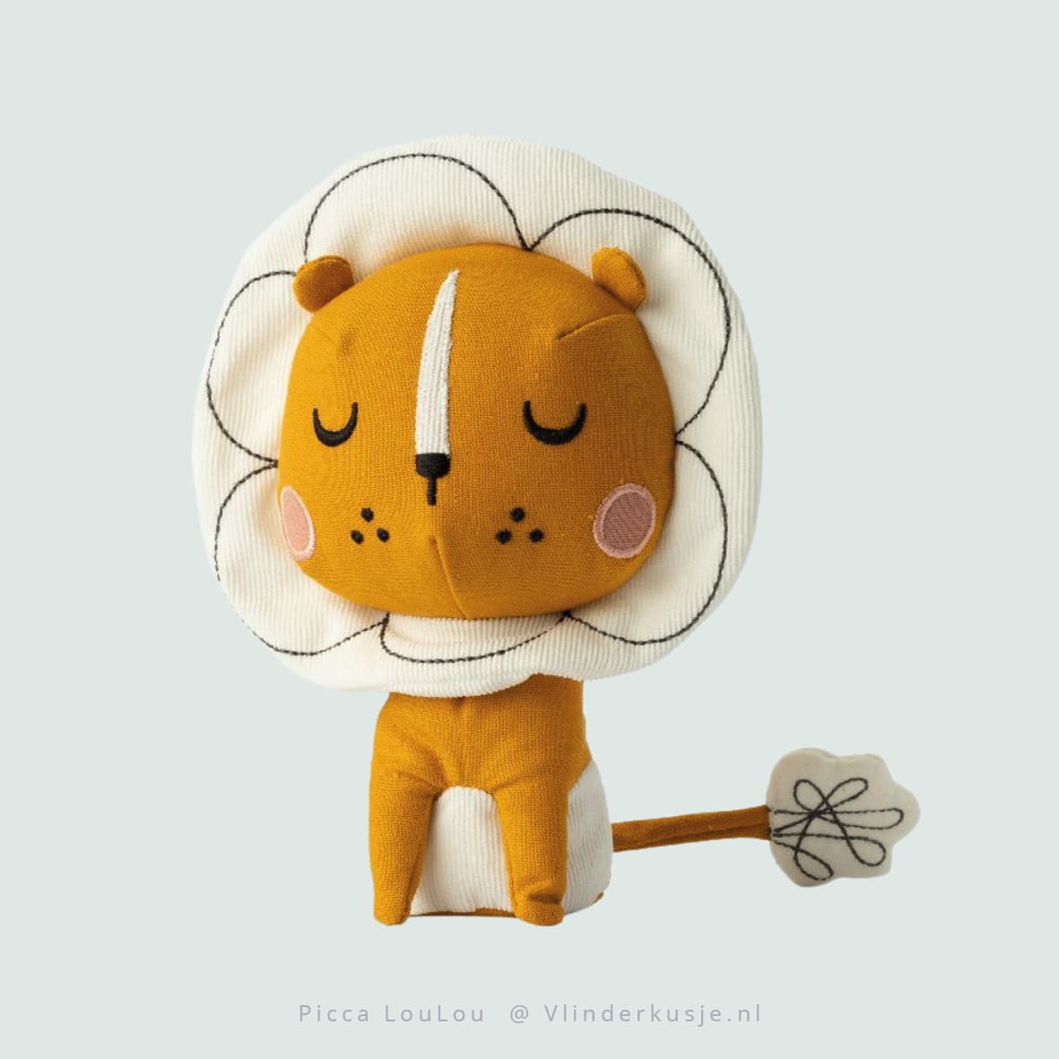 Lief leeuwtje met roze blosjes. Onderin het knuffeltje zitten korreltjes, zodat je hem goed kunt neerzetten. Het leeuwtje is van katoen gemaakt en is 18 cm groot. Het leeuwtje zit in een prachtige kadobox met op de achterkant een lieve tekst over ‘een feestje op de maan’.