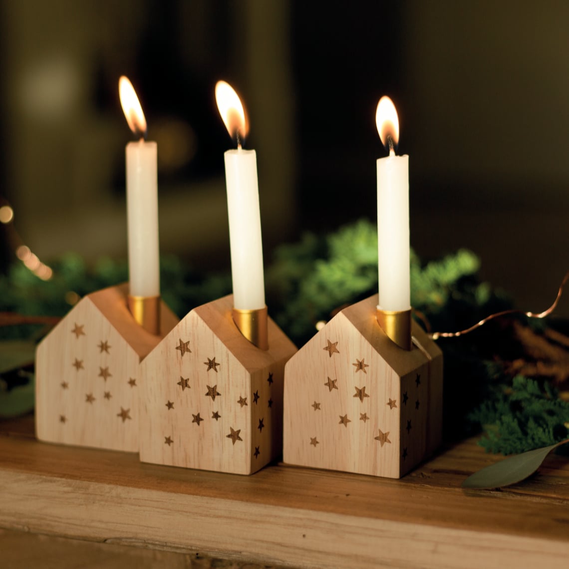 Prachtig klein kaarshoudertje voor potloodkaarsjes met sterretjes. Het houdertje wordt geleverd zonder kaarsjes. Deze zijn hier bij te bestellen.