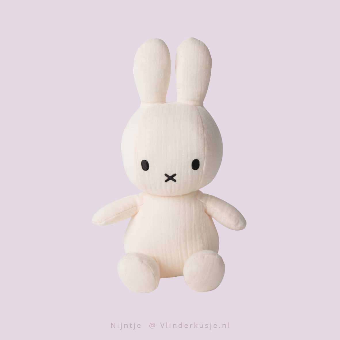 Lieve cremekleurige Nijntje knuffel van mousseline stof van 24 cm hoog.