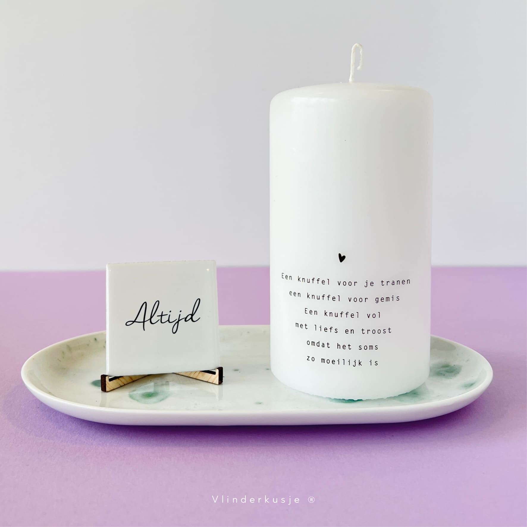 Een bijzonder lief lichtje van Studio Vlinderkusje met het gedichtje ‘Mooiste Ster’ of ‘Knuffel voor je tranen’.