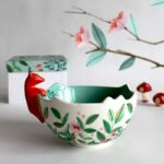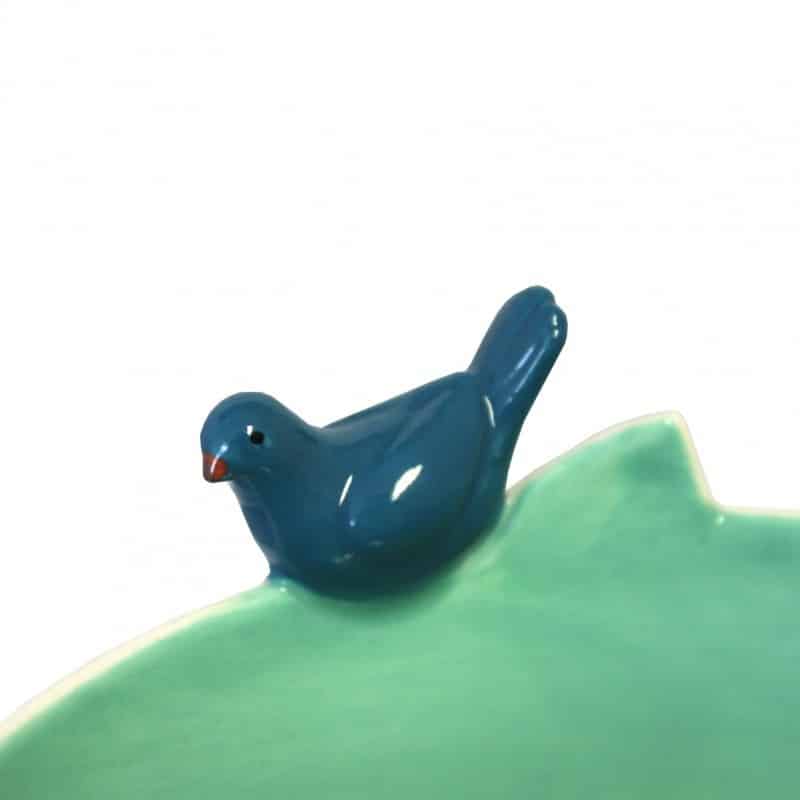 Rond schaaltje met een lief vosje en vogeltje erop. Voor kleine herinneringen of sieraden. Je kunt de kom ook gebruiken voor etenswaren.